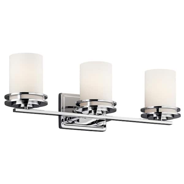 Hendrik 24 in. 3-Light Chrome Contemporary Bathroom Vanity Light with Satin Etched Cased Opal Glass