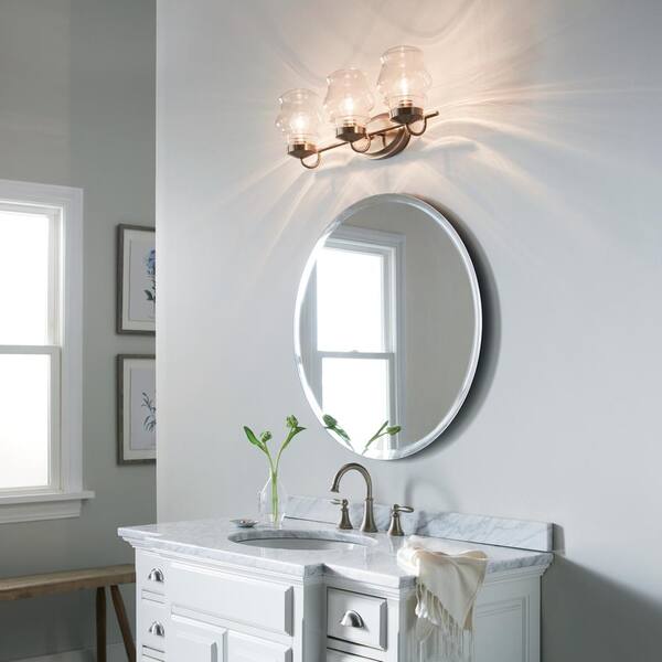 Janiel 24 in. 3-Light Classic Bronze Vintage Bathroom Vanity Light with Clear Glass Shade