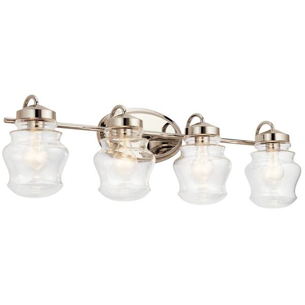 Janiel 33.25 in. 4-Light Polished Nickel Vintage Bathroom Vanity Light with Clear Glass Shade