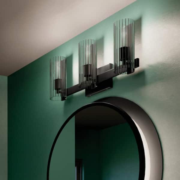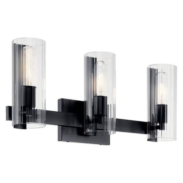 Jemsa 22.75 in. 3-Light Black Soft Modern Bathroom Vanity Light with Clear Fluted Glass
