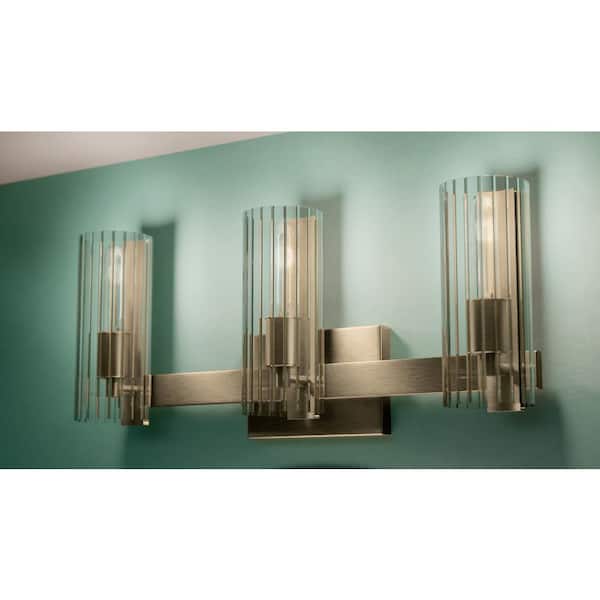 Jemsa 22.75 in. 3-Light Champagne Bronze Soft Modern Bathroom Vanity Light with Clear Fluted Glass
