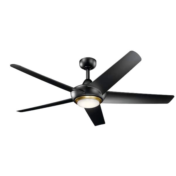 Kapono 52 in. Indoor Satin Black Downrod Mount Ceiling Fan with Integrated LED with Remote Control Included