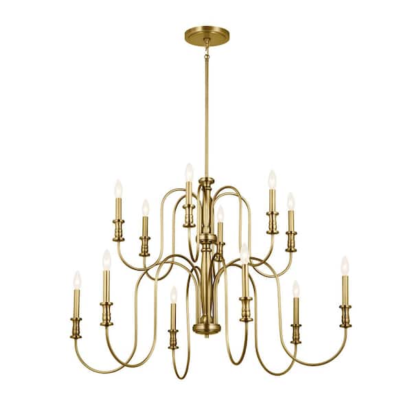 Karthe 42 in. 12-Light Natural Brass 2-Tier Vintage Candle Circle Chandelier for Dining Room