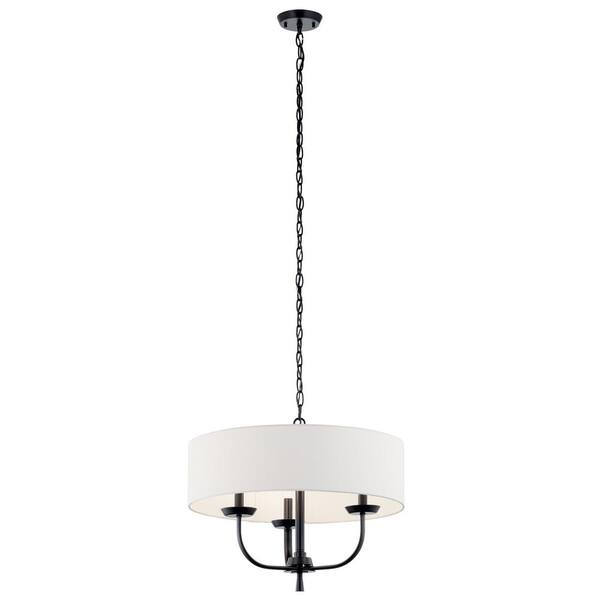 Kennewick 20 in. 3-Light Black Traditional Shaded Drum Chandelier for Dining Room