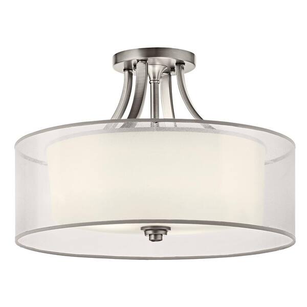 Lacey 20 in. 4-Light Antique Pewter Hallway Transitional Semi-Flush Mount Ceiling Light with Organza Shade