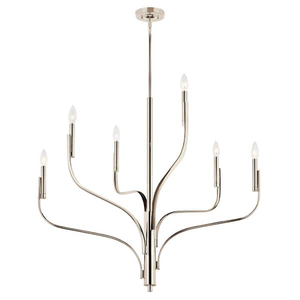 Livadia 36.25 in. 6-Light Polished Nickel Modern Candle Chandelier for Dining Room