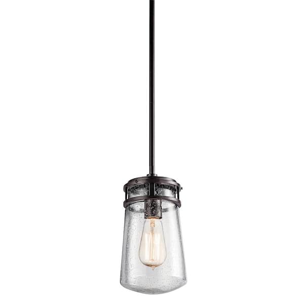 Lyndon 11.75 in. 1-Light Architectural Bronze Hanging Pendant Light with Clear Seeded Glass (1-Pack)