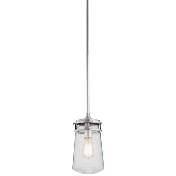 Lyndon 11.75 in. 1-Light Brushed Aluminum Hanging Pendant Light with Clear Seeded Glass (1-Pack)