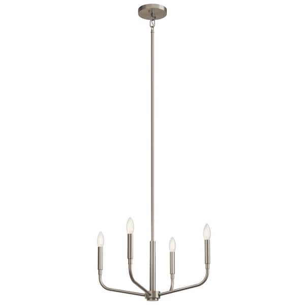 Madden 20 in. 4-Light Brushed Nickel Modern Candle Convertible Chandelier for Dining Room