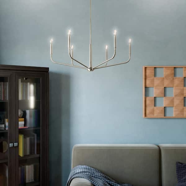 Madden 32 in. 6-Light Brushed Nickel Modern Candle Chandelier for Dining Room