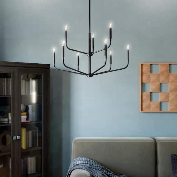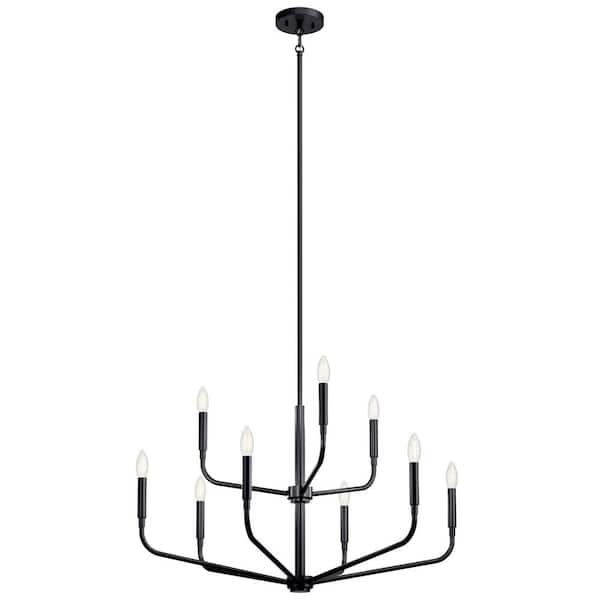Madden 32 in. 9-Light Black Modern Candle Tiered Chandelier for Dining Room