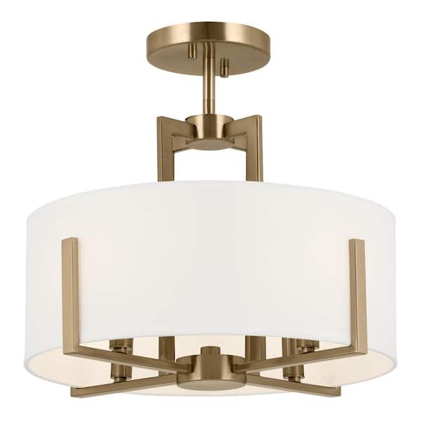 Malen 15.5 in. 4-Light Champagne Bronze Bedroom Traditional Convertible Semi-Flush Mount Ceiling Light with Fabric Shade