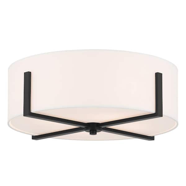 Malen 20 in. 4-Light Black Traditional Bedroom Flush Mount Ceiling Light with White Fabric Shade