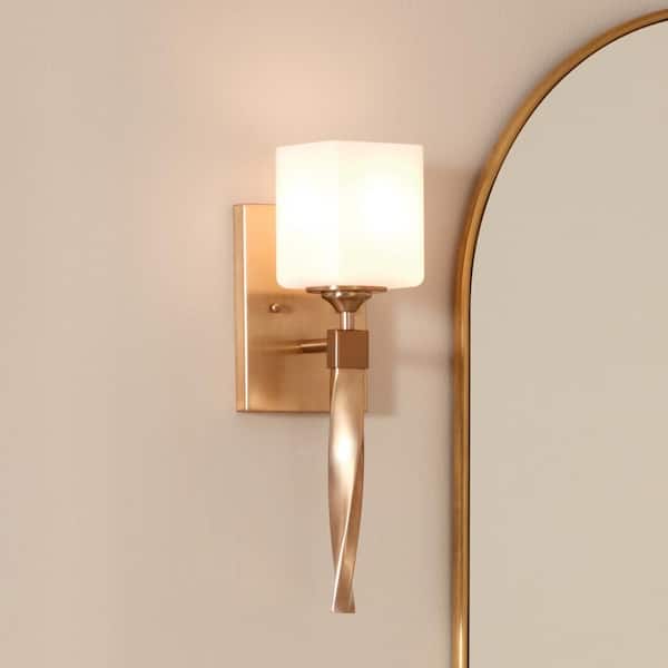 Marette 1-Light Champagne Bronze Bathroom Indoor Wall Sconce Light with Satin Etched Cased Opal Glass Shade