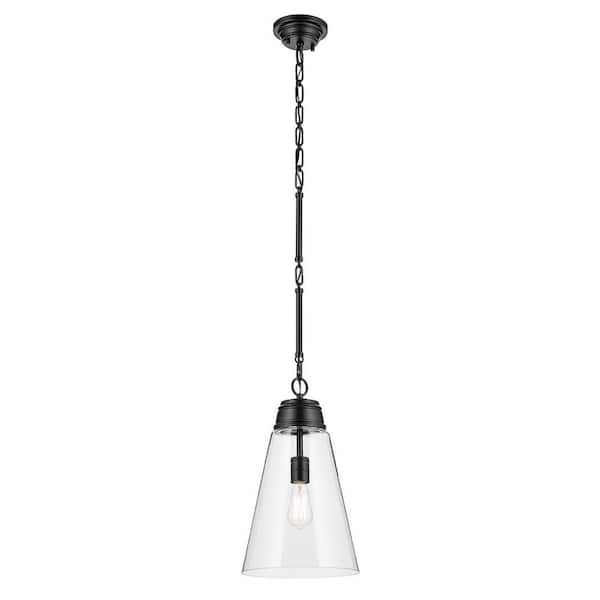 Marsailli 19 in. 1-Light Medium Pendant with Clear Glass in Black