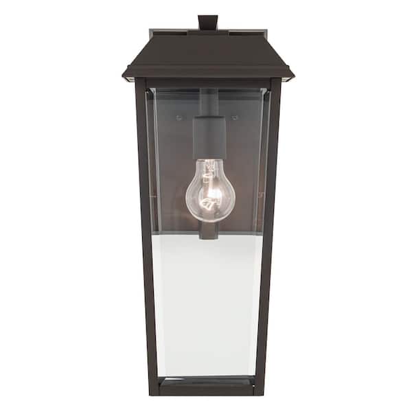 Mathus 18 in. 1-Light Olde Bronze Traditional Outdoor Hardwired Wall Lantern Sconce with No Bulbs Included (1-Pack)