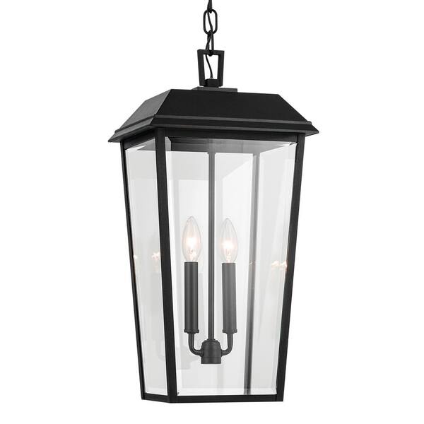 Mathus 22 in. 2-Light Textured Black Traditional Outdoor Porch Hanging Pendant Light with Clear Glass (1-Pack)
