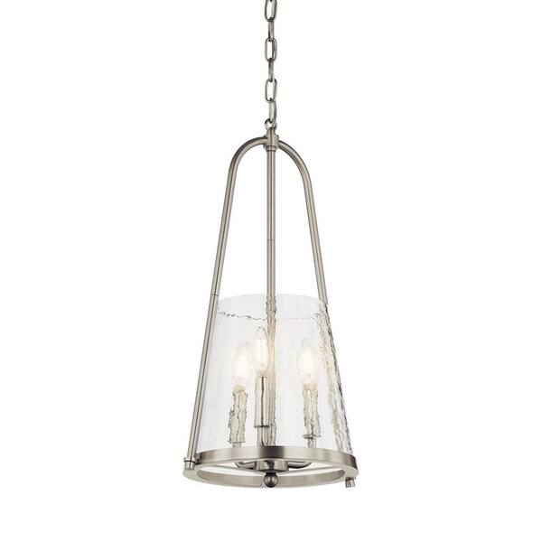 Nerine 3-Light Brushed Nickel Foyer Pendant with Hammered Glass