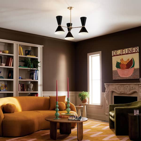 Phix 30.75 in. 6-Light Champagne Bronze and Black Mid-Century Modern Shaded Chandelier for Dining Room
