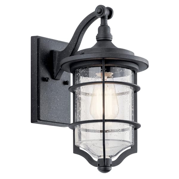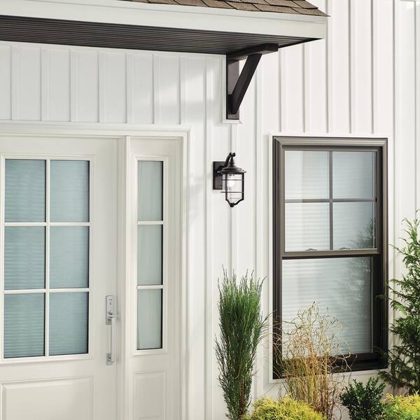 Royal Marine 13.25 in. 1-Light Distressed Black Outdoor Hardwired Wall Lantern Sconce with No Bulbs Included (1-Pack)