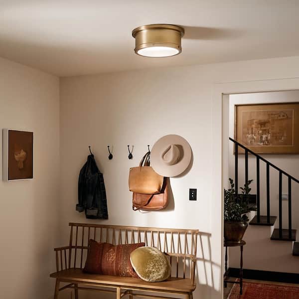 Serca 14.25 in. 2-Light Brushed Natural Brass Traditional Hallway Flush Mount Ceiling Light