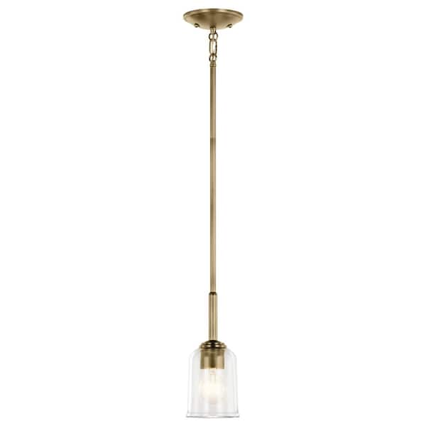 Shailene 1-Light Natural Brass Traditional Shaded Kitchen Mini Hanging Pendant Light with Clear Glass
