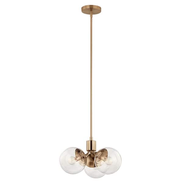 Silvarious 16.5 in. 3-Light Champagne Bronze Modern Clear Glass Shaded Convertible Chandelier for Dining Room