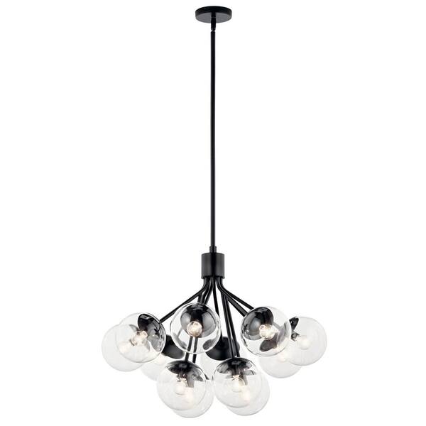 Silvarious 30 in. 12-Light Black Modern Clear Glass Shaded Convertible Chandelier for Dining Room