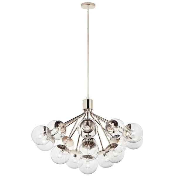 Silvarious 38 in. 16-Light Polished Nickel Modern Clear Glass Shaded Convertible Chandelier for Dining Room