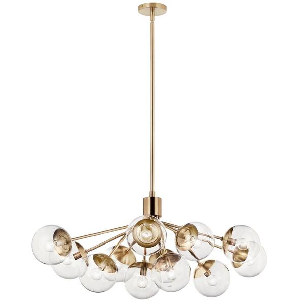 Silvarious 48 in. 12-Light Champagne Bronze Modern Clear Glass Shaded Linear Convertible Chandelier for Dining Room