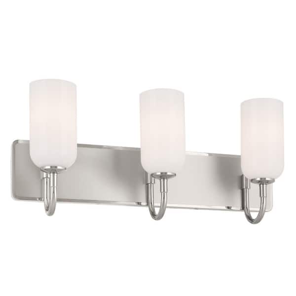 Solia 24 in. 3-Light Polished Nickel with Stain Nickel Modern Bathroom Vanity Light with Opal Glass Shades