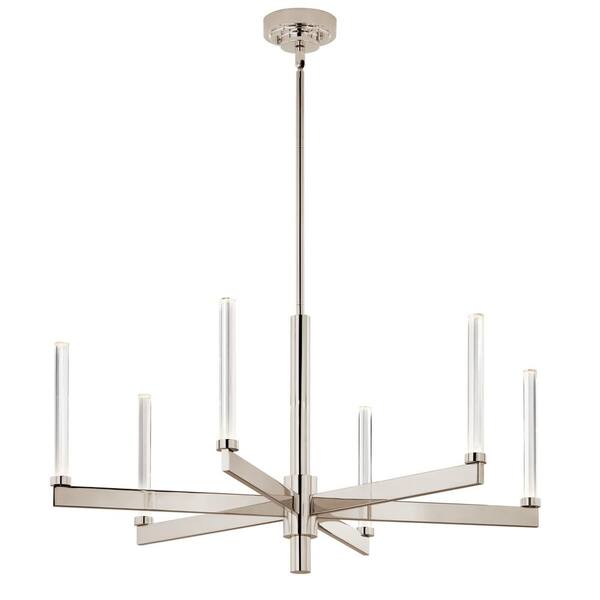 Sycara 36.25 in. 6-Light Integrated LED Polished Nickel Modern Crystal Chandelier for Dining Room