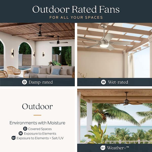• Damp-rated outdoor ceiling fan for covered patios and sunrooms