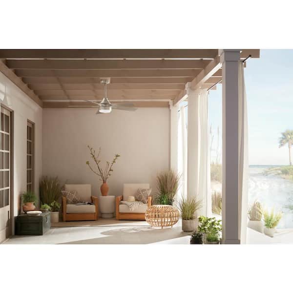 Tide WeatherPlus 52 in. Outdoor Brushed Nickel Downrod Mount Ceiling Fan with Integrated LED with Remote Control