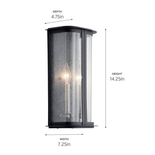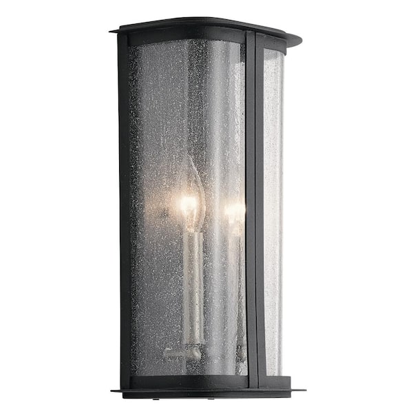 Timmin 14 in. 2-Light Distressed Black Outdoor Hardwired Wall Lantern Sconce with No Bulbs Included (1-Pack)