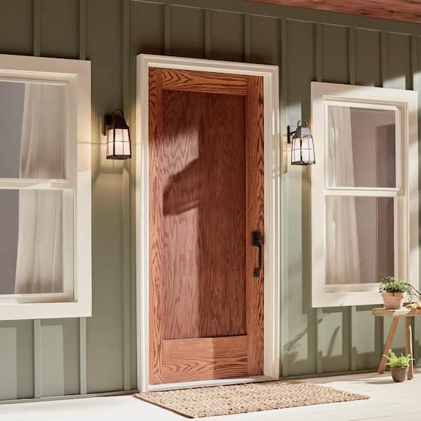 Tolerand 12 in. 1-Light Textured Black Outdoor Hardwired Wall Lantern Sconce with No Bulbs Included (1-Pack)