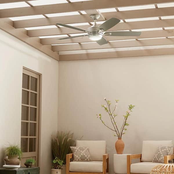 Tranquil WeatherPlus 56 in. Outdoor Brushed Nickel Downrod Mount Ceiling Fan with Integrated LED with Remote Control