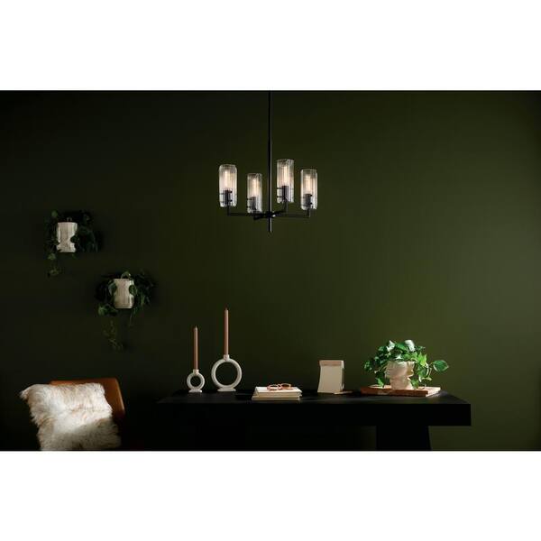 Velestino 20.5 in. 4-Light Black Modern Shaded Cylinder Chandelier for Dining Room