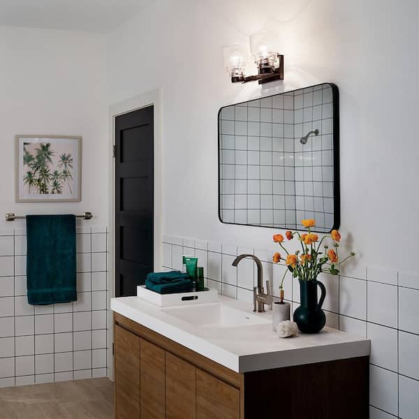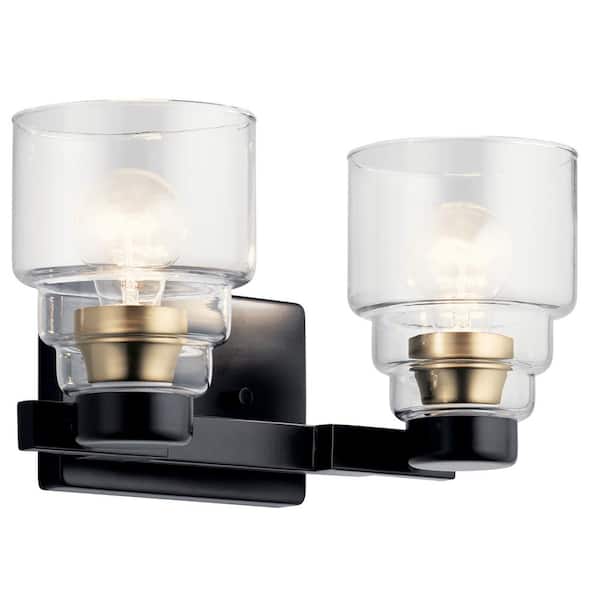 Vionnet 14.5 in. 2-Light Black Transitional Bathroom Vanity Light with Clear Glass