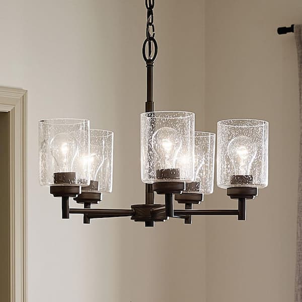 Winslow 19.75 in. 5-Light Olde Bronze Contemporary Shaded Cylinder Chandelier for Dining Room