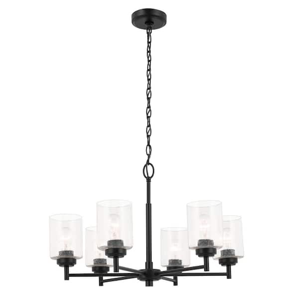 Winslow 26 in. 6-Light Black Contemporary Shaded Circle Chandelier for Dining Room