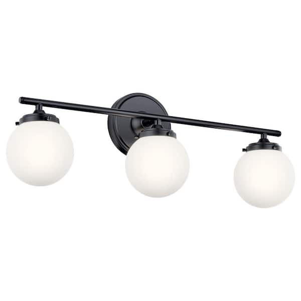 Wynton 24 in. 3-Light Black Mid-Century Modern Bathroom Vanity Light with Satin Etched Cased Opal Glass