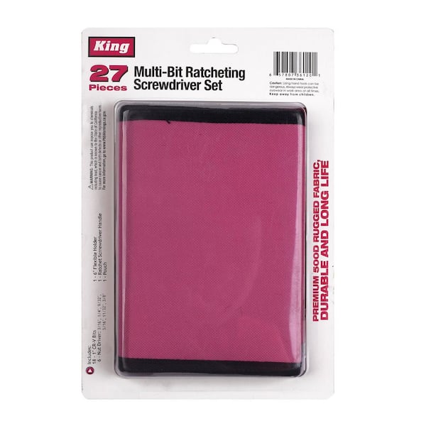 Multi-Bit Ratcheting Screwdriver, 3 Position Ratchet, Pink (27-Piece Set)