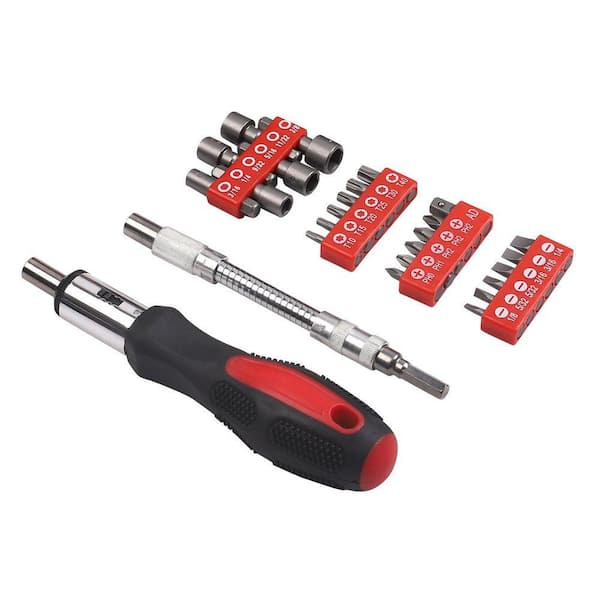 Multi-Bit Ratcheting Screwdriver Set with Carrying Pouch, 3 Position Ratchet, Red (27-Piece Set)