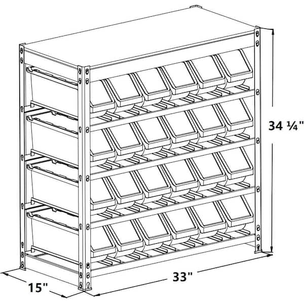 Gray 4-Tier Botless Bin Storage System Garage Storage Rack (24 Plastic Bins in 4 Tier)