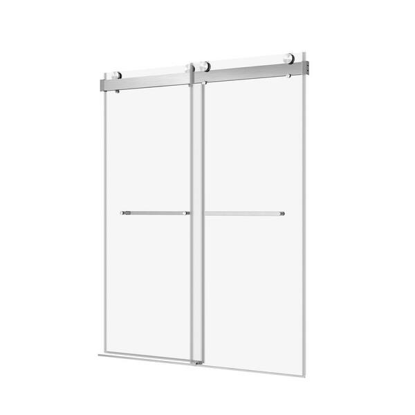 72 in. W x 76 in. H Sliding Frameless Shower Door in Brushed Nickel with Clear Glass