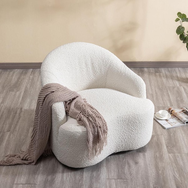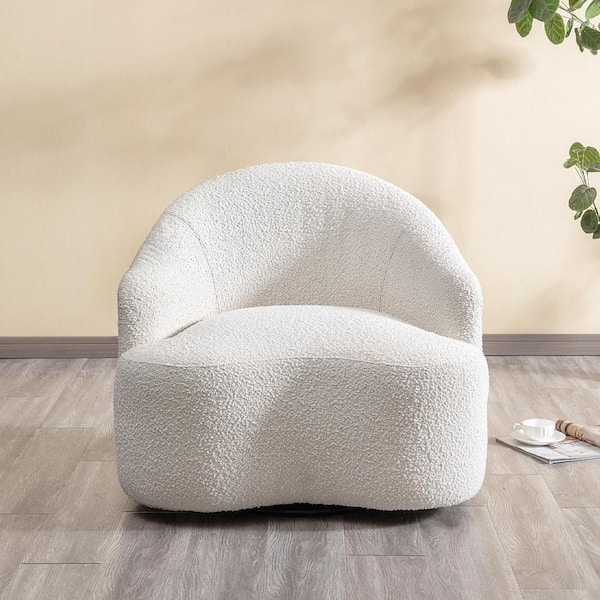Beige 34 in. Wide Curved Boucle Upholstered Swivel Barrel Chair