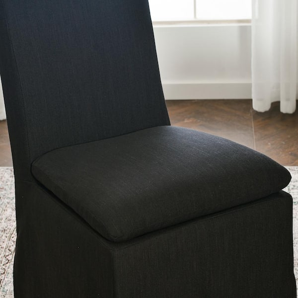 Black Performance Fabric Slipcover Upholstered Dining Side Chair with Casters (Set of 2)
