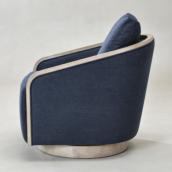 Navy Modern Polyester Upholstered Swivel Barrel Armchair with Down Filled Pillow Back