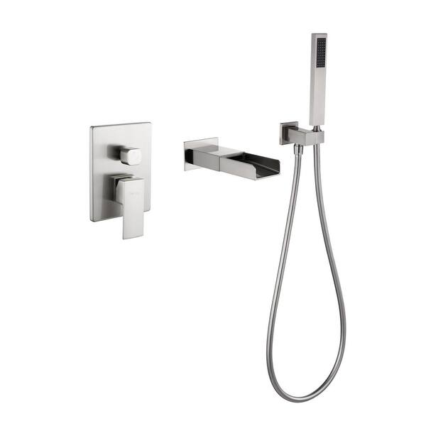Single-Handle Wall Mount Roman Tub Faucet with Hand Shower in Brushed Nickel (Valve Included)